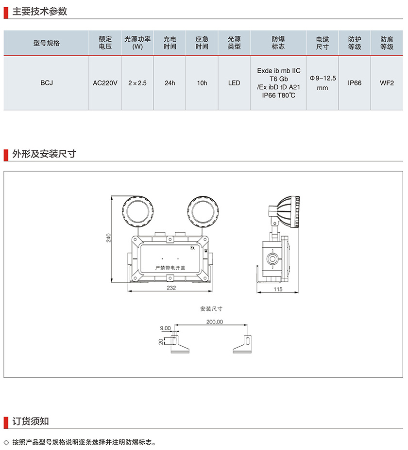 BCJ系列防爆消防应急双头照明灯具(IIC)
