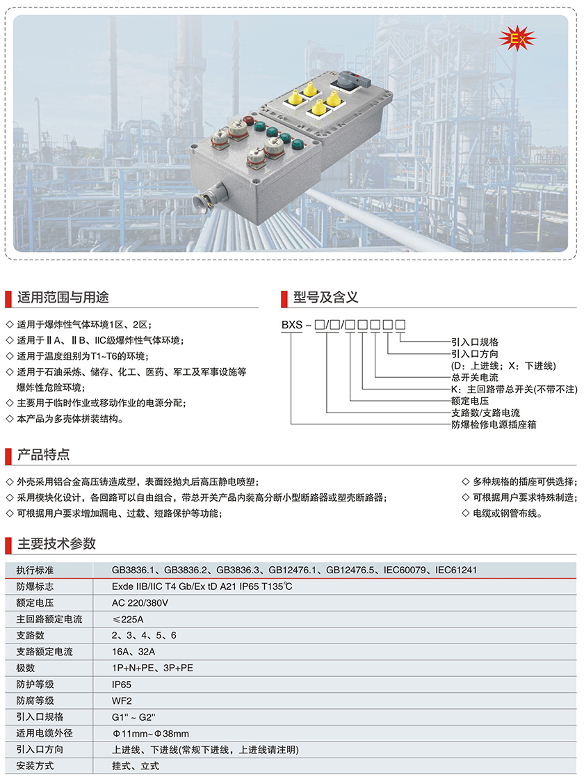 BXS系列防爆检修电源插座箱(IIB、IIC、Ex tD)